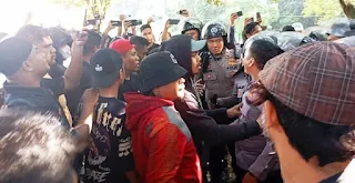 Bahkan kondisi mulai tidak kondusif karena dari kubu termohon ada sekelompok orang berjaga di area parkir belakang untuk melakukan penghadangan, sampai terjadi aksi dorong-dorongan dan didapati satu orang sebagai provokasi diamankan petugas gabungan.