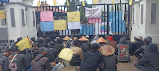 CIANJUR -Puluhan warga desa batulawang kecamatan cipanas cianjur, Pemersatu Petani Cianjur (PPC), Konsorsium Pembaruan Agraria (KPA), PC Pergerakan Mahasiswa Islam Indonesia (PMII) dan SPRI melakukan pemasangan bendera kuning dan aksi tutup mulut selain bentuk matinya ATR/BPN cianjur yang tidak bisa menghentikan operasi Bank tanah oleh pemerintah cianjur 11/8.